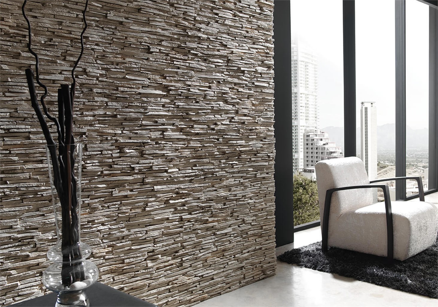 Die Wandpaneele bestehen aus Polyurethan und sind mit einer feinen Stein-Deckschicht versehen. Damit wird der optische Stein-Eindruck beim Berühren zusätzlich noch verstärkt. Ob rustikal in Backsteinoptik oder hell in Schieferstruktur – mit NeoWall EASY werden Räume einzigartig.